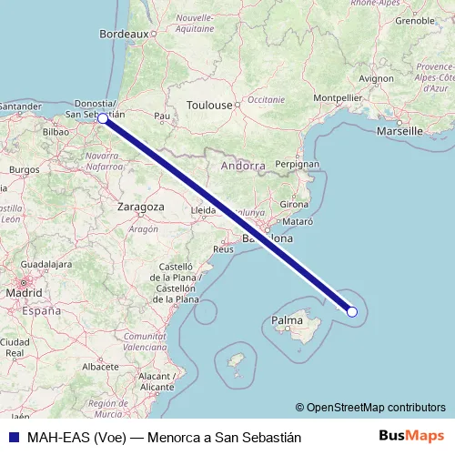 Click here to view the nearest MAH-EAS (Voe) - Menorca a San Sebastián air stop.