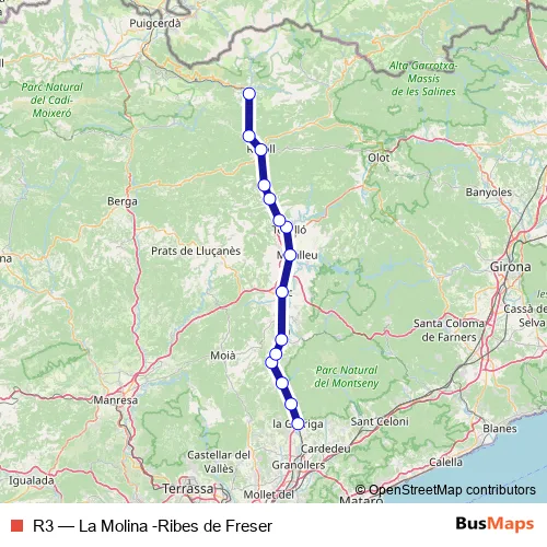 Ribes De Freser. R3 (La Molina -Ribes de Freser) is operational during everyday.