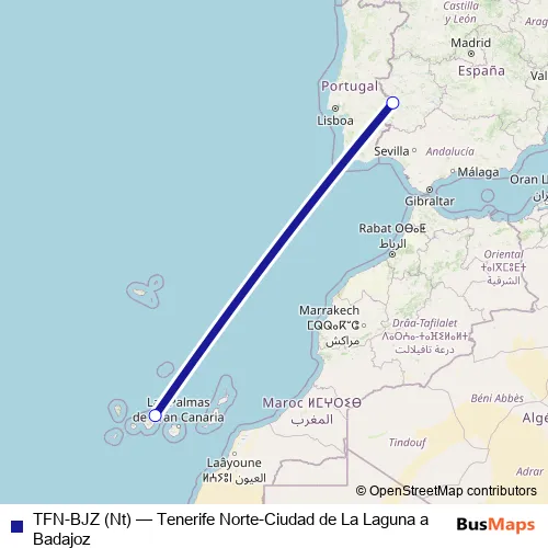 Click here to view the nearest TFN-BJZ (Nt) - Tenerife Norte-Ciudad de La Laguna a Badajoz air stop.
