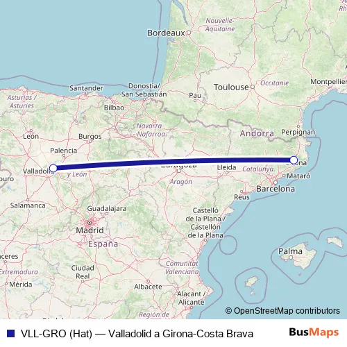 Aeropuerto Girona-Costa Brava. VLL-GRO (Hat) (Valladolid a Girona-Costa Brava) is operational during everyday.