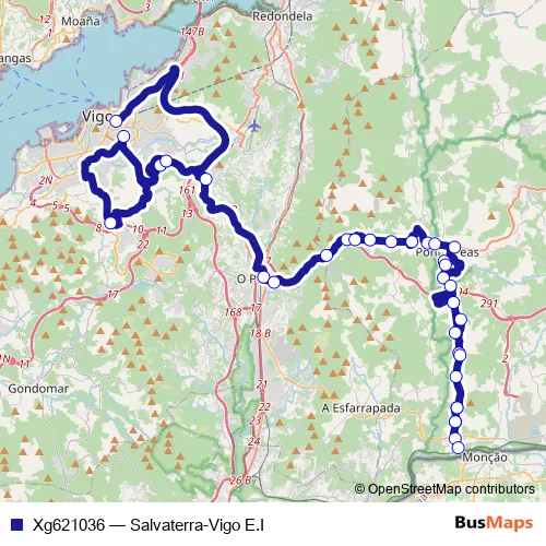 Rúa Serafín Avendaño - Avenida do Alcalde Gregorio Espino - Estrada de Clara Campoamor - Baixada ao Castelo - Avenida de Puxeiros - Avenida de Galicia - Rúa de Antonio Palacios - N-120 - Rotonda de Canedo - PO-403 - Rúa dos Feás - PO-403 - Rúa Raiña Doña Urraca