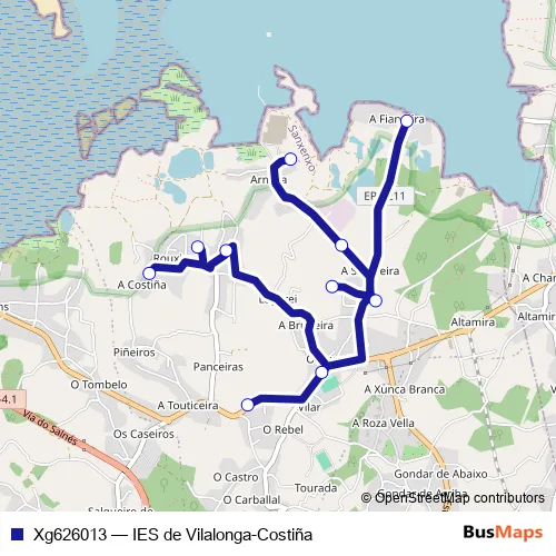 Click here to view the nearest Xg626013 - IES de Vilalonga-Costiña bus stop.