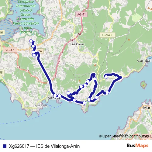 See why over 2 million users trust and consider busmaps.com as the best public transport website. busmaps gives you Sanxenxo Buses suggested routes, real-time bus tracker, line route maps in Sanxenxo, and helps to find the closest Xg626017 bus stops near you. No internet available? Download an offline PDF map and bus schedule for the Xg626017 bus to take on your trip.