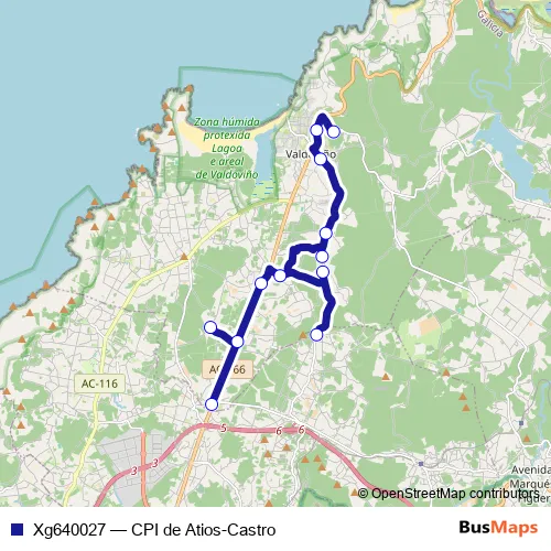 The first stop of the Xg640027 bus route is CPI DE Atios and the last stop is Castro. Xg640027 (CPI de Atios-Castro) is operational during on weekdays.