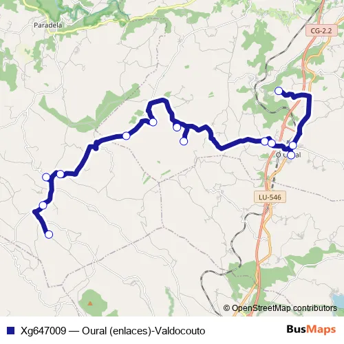 Click here to view the nearest Xg647009 - Oural (enlaces)-Valdocouto bus stop.
