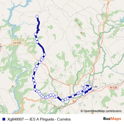 The first stop of the Xg648007 bus route is A Pena and the last stop is IES A Pinguela. Xg648007 (IES A Pinguela - Currelos) is operational during on weekdays.