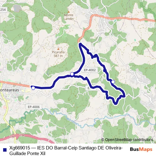 Click here to view the nearest Xg669015 - IES DO Barral-Ceip Santiago DE Oliveira-Guillade Ponte Xil bus stop.