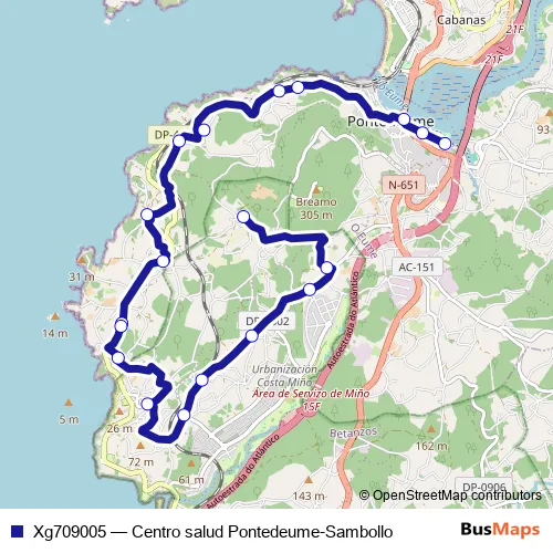Bus Xg709005 - Centro salud Pontedeume-Sambollo: Full Schedule in Mino