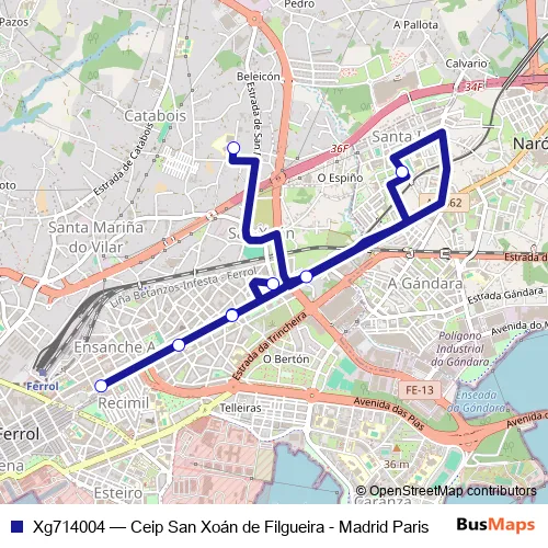 See why over 2 million users trust and consider busmaps.com as the best public transport website. busmaps gives you Ferrol Buses suggested routes, real-time bus tracker, line route maps in Ferrol, and helps to find the closest Xg714004 bus stops near you. No internet available? Download an offline PDF map and bus schedule for the Xg714004 bus to take on your trip.
