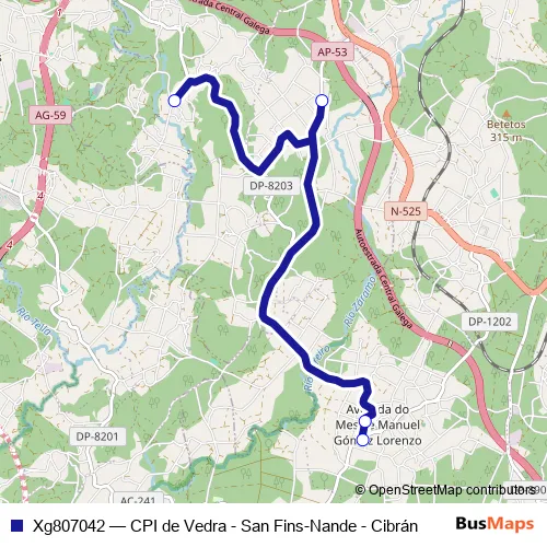 Click here to view the nearest Xg807042 - CPI de Vedra - San Fins-Nande - Cibrán bus stop.