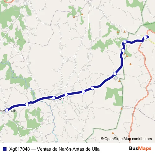 The first stop of the Xg817048 bus route is Antas de Ulla and the last stop is Ventas De Narón. Xg817048 (Ventas de Narón-Antas de Ulla) is operational during on weekdays.