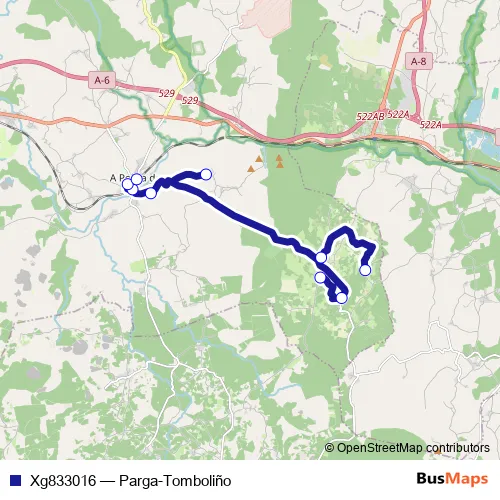 Services on the Xg833016 - Parga-Tomboliño bus start at 08:40 on Monday, Tuesday, Wednesday, Thursday, Friday.