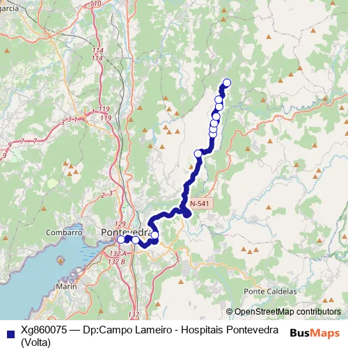 Click here to view the nearest Xg860075 - Dp:Campo Lameiro - Hospitais Pontevedra (Volta) bus stop.