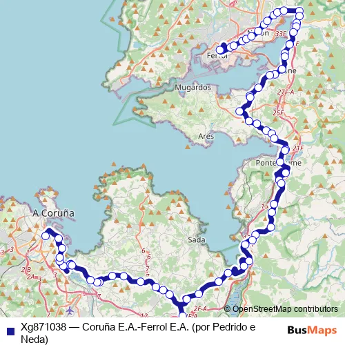 Click here to view the nearest Xg871038 - Coruña E.A.-Ferrol E.A. (por Pedrido e Neda) bus stop.