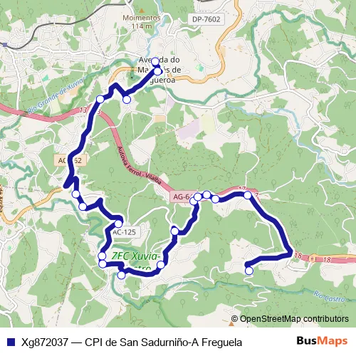 The first stop of the Xg872037 bus route is CPI DE SAN Sadurniño and the last stop is A Fraguela. Xg872037 (CPI de San Sadurniño-A Freguela) is operational during on weekdays.