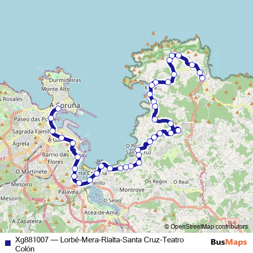 The first stop of the Xg881007 bus route is A Valexa and the last stop is