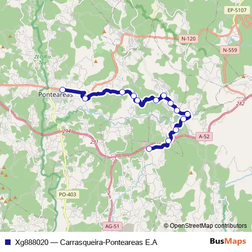 Click here to view the nearest Xg888020 - Carrasqueira-Ponteareas E.A bus stop.