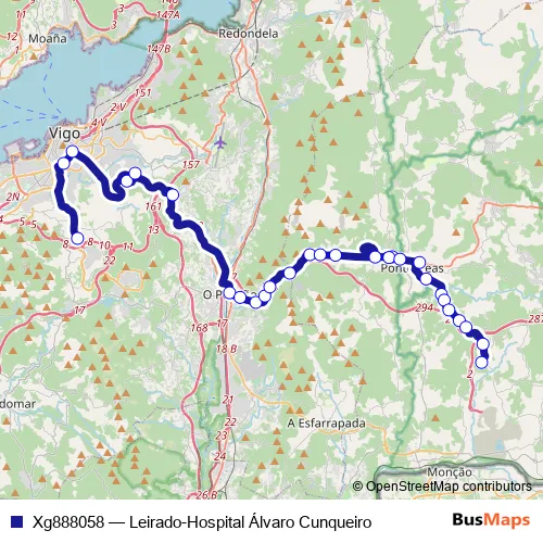 The first stop of the Xg888058 bus route is Hospital Álvaro Cunqueiro and the last stop is Leirado. Xg888058 (Leirado-Hospital Álvaro Cunqueiro) is operational during everyday.