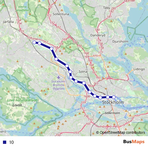 See why over 2 million users trust and consider busmaps.com as the best public transport website. busmaps gives you Stockholm Metro Lines suggested routes, real-time bus tracker, line route maps in Stockholm, and helps to find the closest 10 metro stops near you. No internet available? Download an offline PDF map and bus schedule for the 10 metro to take on your trip.