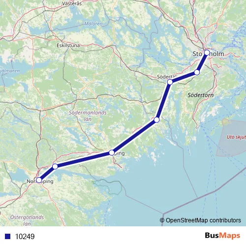 The first stop of the 10249 rail route is Stockholm Centralstation and the last stop is Vagnhärad station. 10249 is operational during everyday.