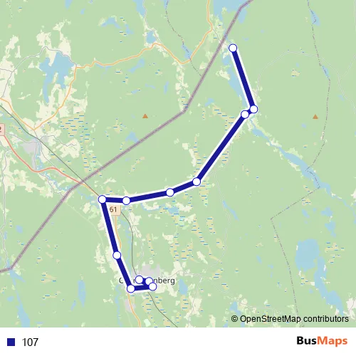 The first stop of the 107 bus route is Vårdcentralen Charlottenberg and the last stop is Håvilsrud, Charlottenberg. 107 is operational during on weekdays.