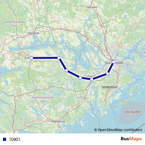 The first stop of the 10901 rail route is Stockholm Centralstation and the last stop is Eskilstuna Centralstation. 10901 is operational during on weekdays.