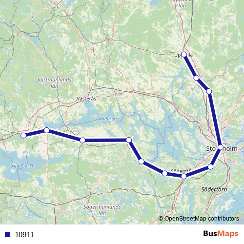 The first stop of the 10911 rail route is Uppsala Centralstation and the last stop is Arboga station. 10911 is operational during on weekends.