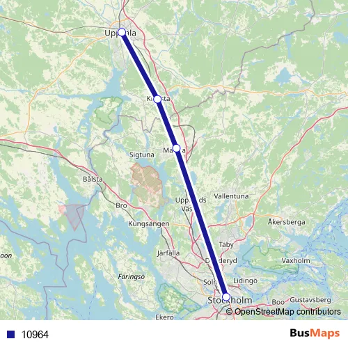 The first stop of the 10964 rail route is Stockholm Centralstation and the last stop is Uppsala Centralstation. 10964 is operational during on weekdays.