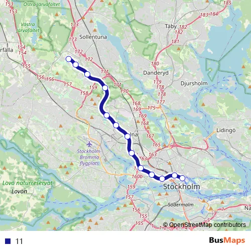 See why over 2 million users trust and consider busmaps.com as the best public transport website. busmaps gives you Stockholm Metro Lines suggested routes, real-time bus tracker, line route maps in Stockholm, and helps to find the closest 11 metro stops near you. No internet available? Download an offline PDF map and bus schedule for the 11 metro to take on your trip.