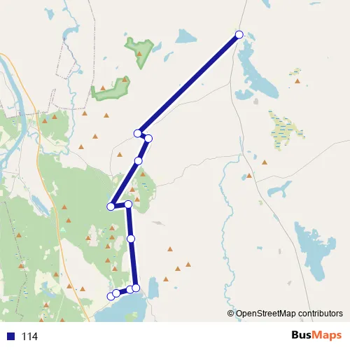 The first stop of the 114 bus route is Tavelsjö skola and the last stop is Mickelsträsk. 114 is operational during on weekdays.