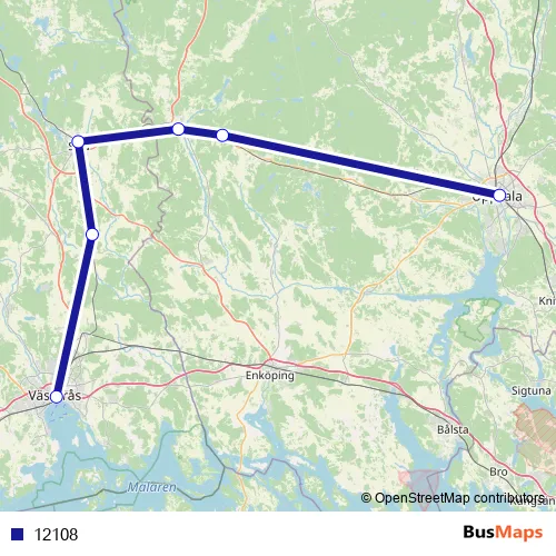 The first stop of the 12108 rail route is Västerås Centralstation and the last stop is Uppsala Centralstation. 12108 is operational during on weekends.