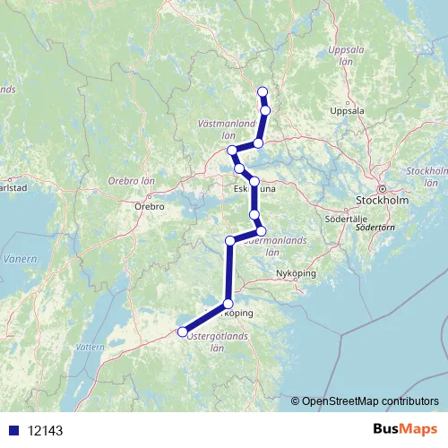 The first stop of the 12143 rail route is Sala station and the last stop is Linköping Centralstation. 12143 is operational during on weekends.