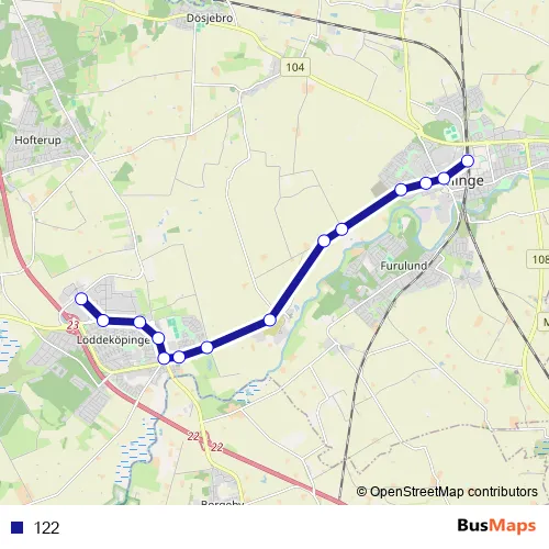 The first stop of the 122 bus route is Löddeköpinge Center Syd and the last stop is Kävlinge station. 122 is operational during everyday.