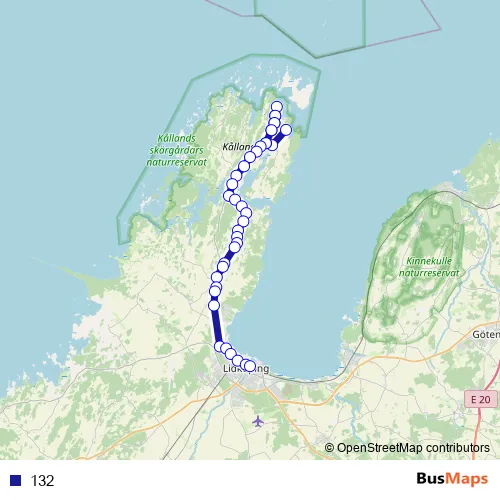The first stop of the 132 bus route is Läckö slott and the last stop is Lidköping station. 132 is operational during everyday.