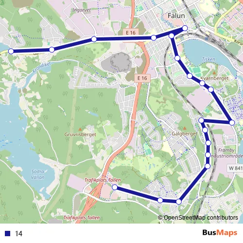 See why over 2 million users trust and consider busmaps.com as the best public transport website. busmaps gives you Falun Buses suggested routes, real-time bus tracker, line route maps in Falun, and helps to find the closest 14 bus stops near you. No internet available? Download an offline PDF map and bus schedule for the 14 bus to take on your trip.