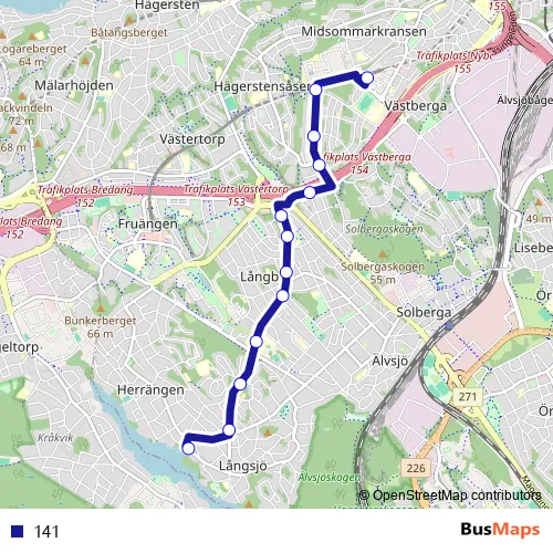 See why over 2 million users trust and consider busmaps.com as the best public transport website. busmaps gives you Stockholm Buses suggested routes, real-time bus tracker, line route maps in Stockholm, and helps to find the closest 141 bus stops near you. No internet available? Download an offline PDF map and bus schedule for the 141 bus to take on your trip.
