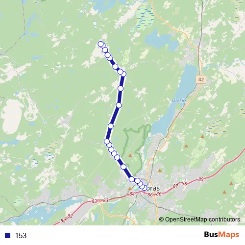 The first stop of the 153 bus route is Borås Centralstation and the last stop is Vralen. 153 is operational during on weekdays.