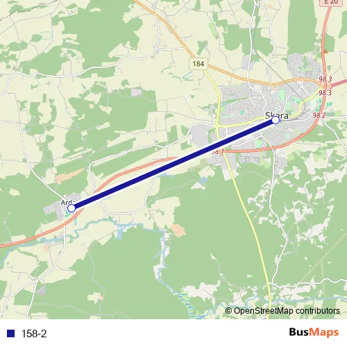 The first stop of the 158-2 bus route is Ardala and the last stop is Skara busstation. 158-2 is operational during everyday.
