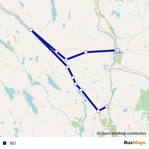 The first stop of the 161 bus route is Vindeln Resecentrum/Station and the last stop is Tvärålund. 161 is operational during on weekdays.