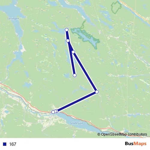The first stop of the 167 bus route is Närtrafikhållplats Storhullsjön and the last stop is Stöde Affären E14. 167 is operational during on weekdays.