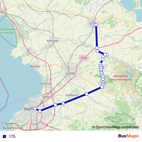 The first stop of the 175 bus route is Eslöv station and the last stop is Malmö Värnhem. 175 is operational during everyday.
