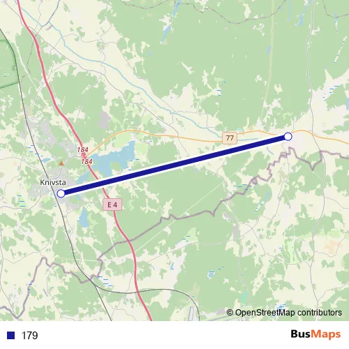 See why over 2 million users trust and consider busmaps.com as the best public transport website. busmaps gives you Knivsta Buses suggested routes, real-time bus tracker, line route maps in Knivsta, and helps to find the closest 179 bus stops near you. No internet available? Download an offline PDF map and bus schedule for the 179 bus to take on your trip.