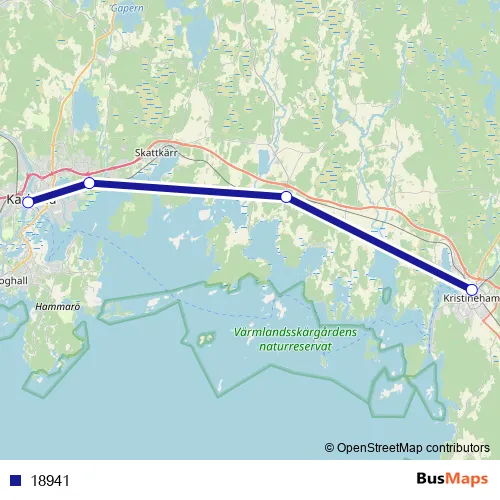 The first stop of the 18941 rail route is Kristinehamn station and the last stop is Karlstad Centralstation. 18941 is operational during everyday.