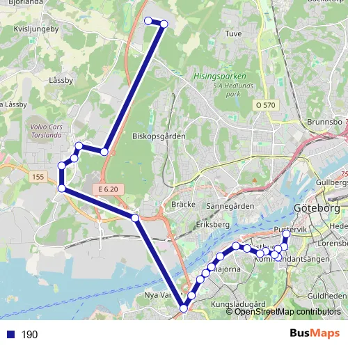 Bus 190 in Goeteborg: Stops & Timetable