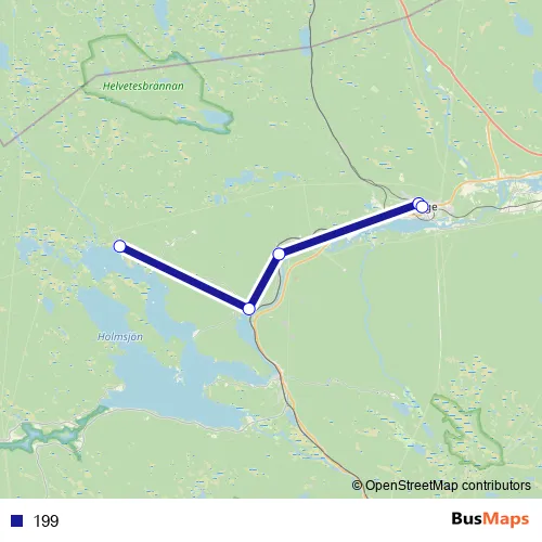 The first stop of the 199 bus route is Byberget and the last stop is Ånge station. 199 is operational during on weekdays.