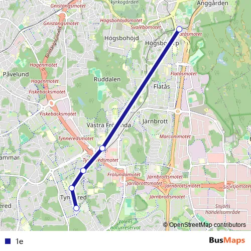 See why over 2 million users trust and consider busmaps.com as the best public transport website. busmaps gives you Goeteborg Buses suggested routes, real-time bus tracker, line route maps in Goeteborg, and helps to find the closest 1e bus stops near you. No internet available? Download an offline PDF map and bus schedule for the 1e bus to take on your trip.