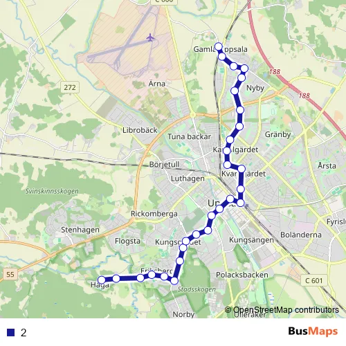 See why over 2 million users trust and consider busmaps.com as the best public transport website. busmaps gives you Uppsala Buses suggested routes, real-time bus tracker, line route maps in Uppsala, and helps to find the closest 2 bus stops near you. No internet available? Download an offline PDF map and bus schedule for the 2 bus to take on your trip.