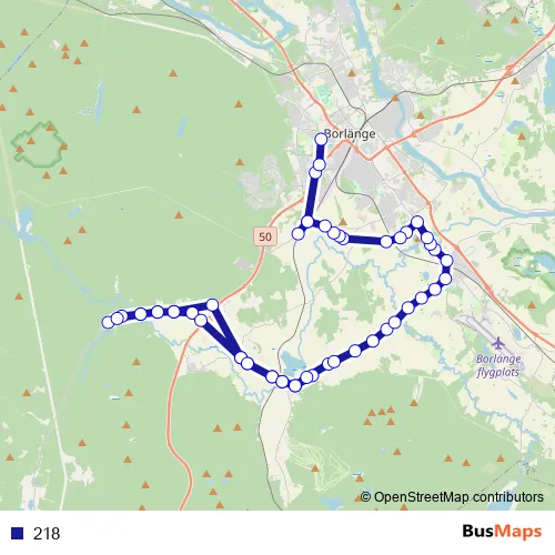 The first stop of the 218 bus route is Halvars skola skolbusshållplats and the last stop is Borlänge Jaxrondellen. 218 is operational during on weekdays.
