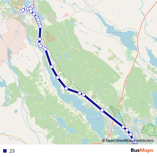 The first stop of the 23 bus route is Boden Garnis and the last stop is Luleå busstation. 23 is operational during on weekends.