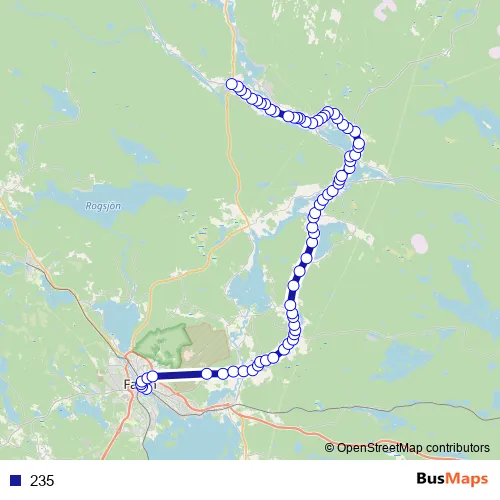 The first stop of the 235 bus route is Falun Centralstation and the last stop is Enviken busstation. 235 is operational during everyday.
